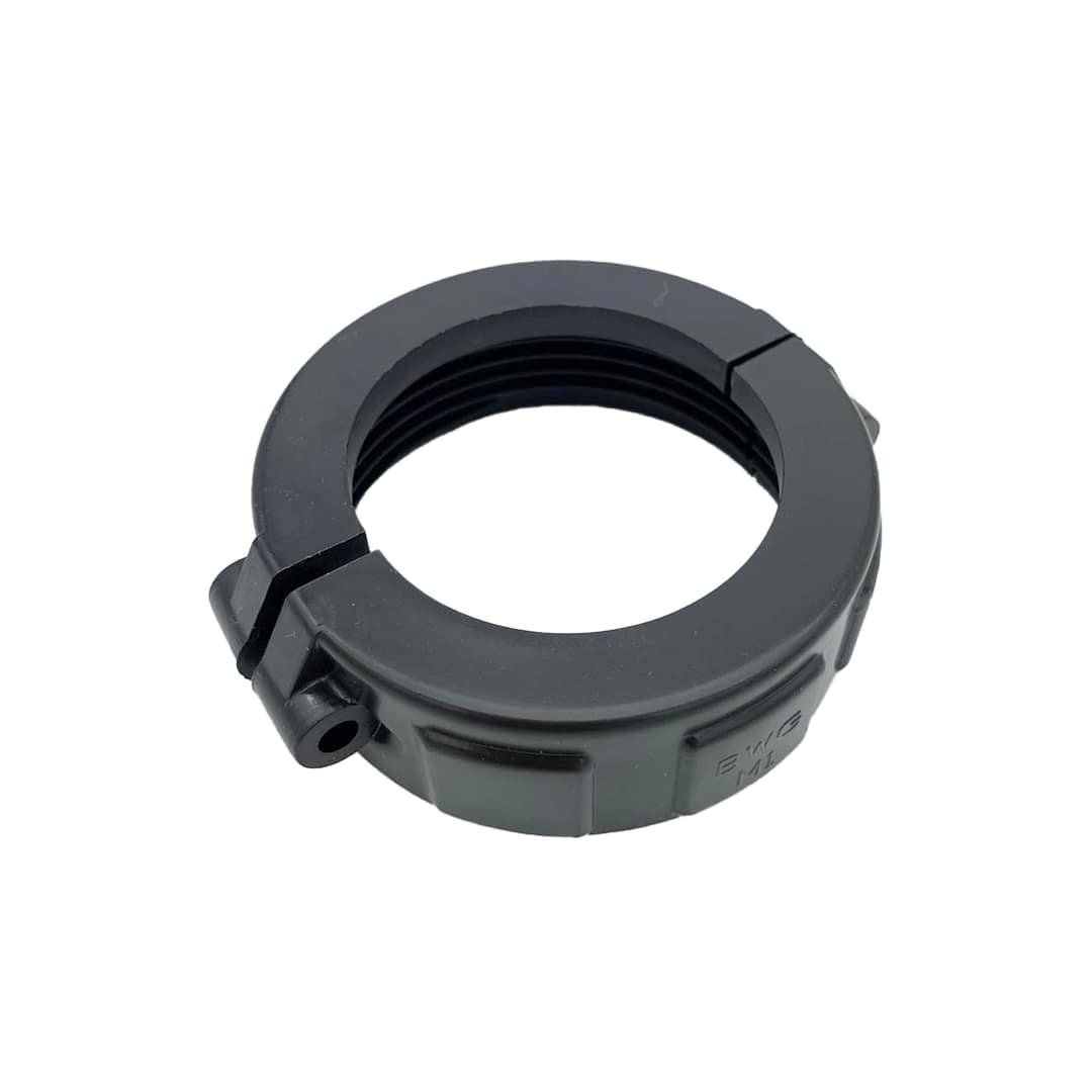 Nut is in two pieces and slides over the heater tube and is held together with two screws, once it is screw together the nut has a a collar that prevents it sliding off the heater tube.