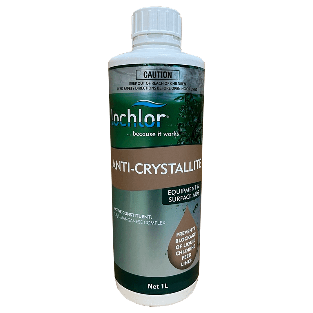 Continual use of anti-crystallite in un-balanced pools may result in staining of plastic pool fittings.