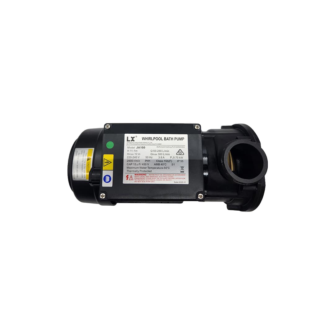 The Pro Series JA100 is a 1.0hp circulation pump with a top centre discharge and self-drains after use. Can be found in hot tubs, baths & hydrotherapy spas and features upgraded components over standard pumps.